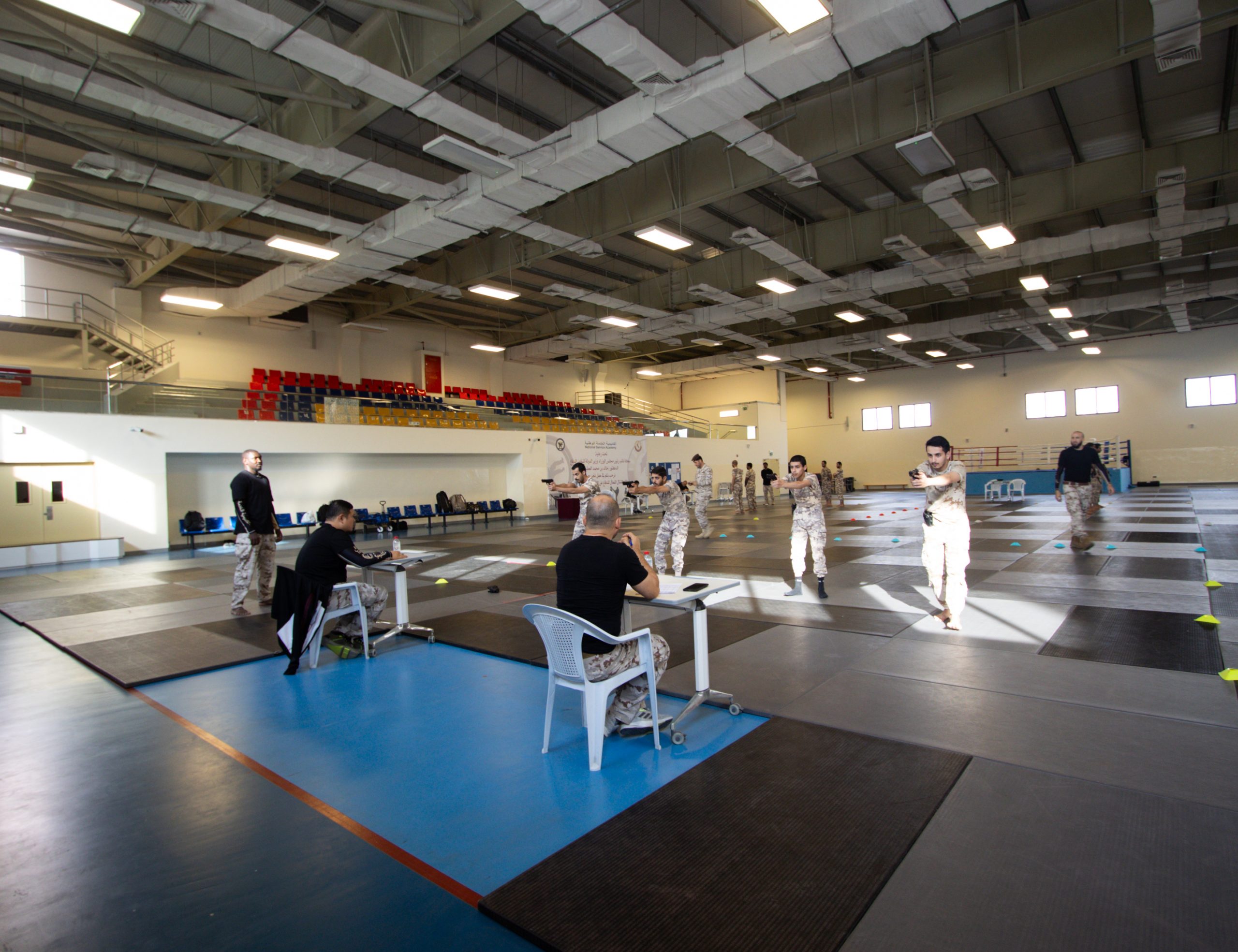 تحتوي على كل المعدات الرياضية اللازمة وتعتبر أكبر صالة جم على مستوى معسكرات القوات المسلحة القطرية